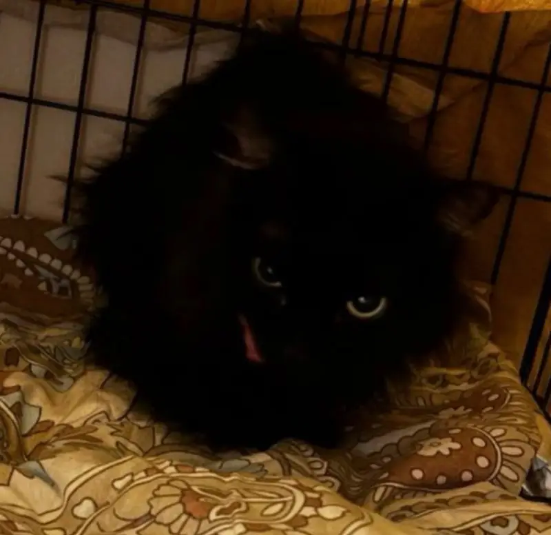 Котик черненький, пузико на свету коричневое, пушистый хвостик, весит примерно 6 кг, есть седая шерсть около его лапок, объемнинький и мягенький, глазки желтые.