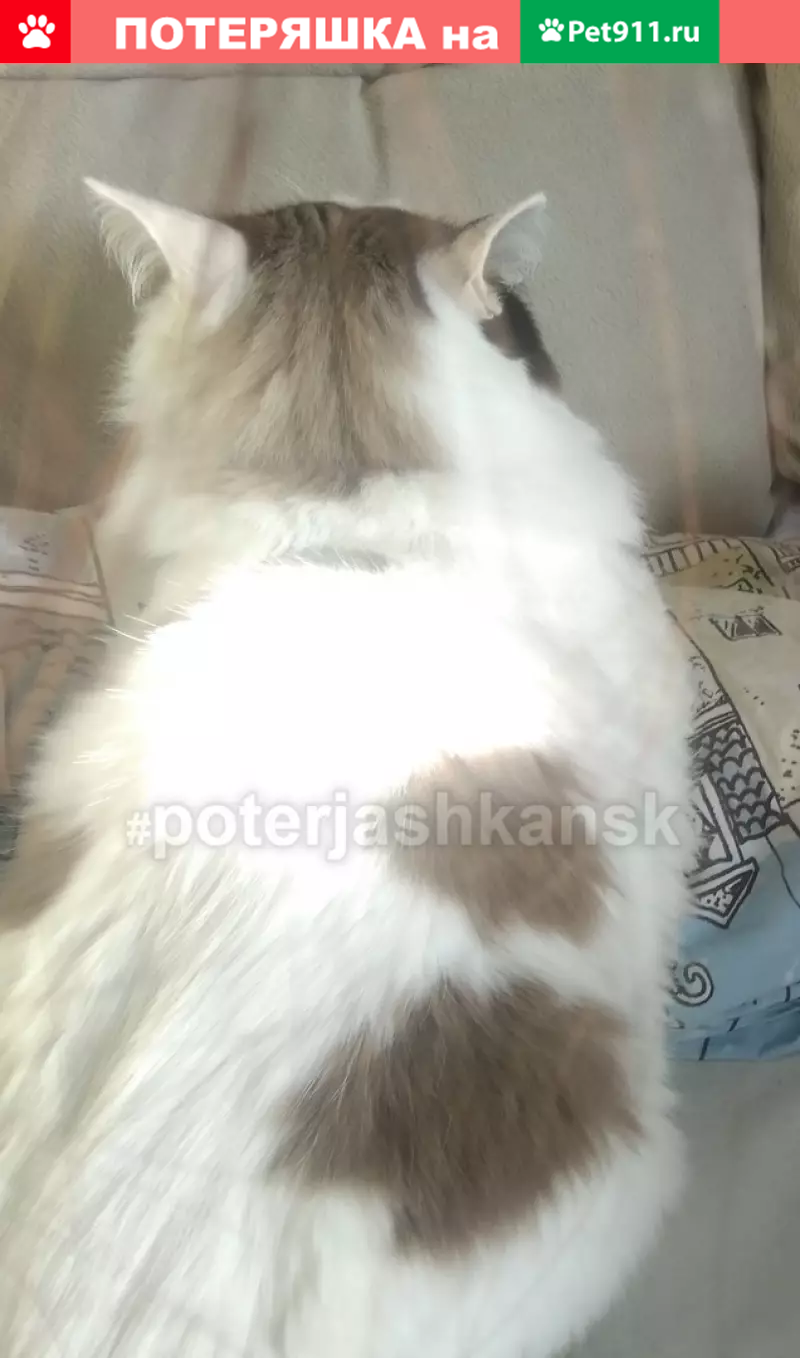 Нижняя Ельцовка. Потерялся 14 июля на Экваторной 1, последний подъезд. Мог уйти на Лесосечную 3-5-7. Кот белый, с кофейными пятнами, темными ушами и хвостом. Голубоглазый, нос розовый. На шее черный ошейник от блох. Зовут Барс. Если кто-то видел или приютил, пожалуйста, сообщите. Очень переживаем. Нашедшему вознаграждение. 8-913-955-48-21 8-903-933-84-38