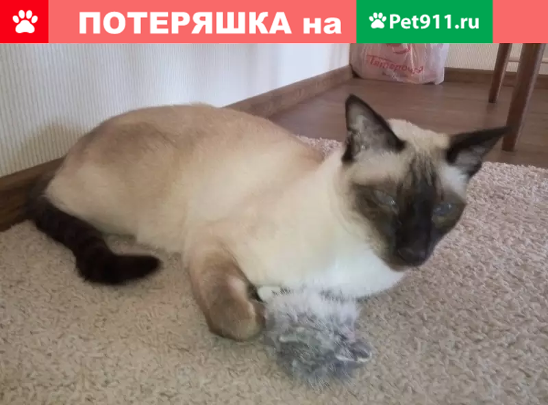 21 июля в садовом обществе «Медик» ул. Вишнёвая, 6 (остановка Сады Медик, автобуса 1170 (Кудряшы) ) потерялся домашний кот «сеамской» породы. Коту 10 лет, ласковый.