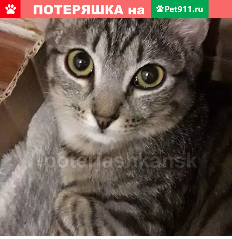 Пропал кот!!! Серый с белыми полосками, жёлто-зелёными глазами,ласковый. 1,5 года не кострат.Откликается на кличку Макс,Максик.Предположительно в темноте ночью выбежал из подъезда.Пожалуйста если кто-то его видел или приютил у себя позвоните по номеру: -Валентина.Мы его очень ждём. #Кировский@poterjashkansk #poterjashkansk #потеряшканск