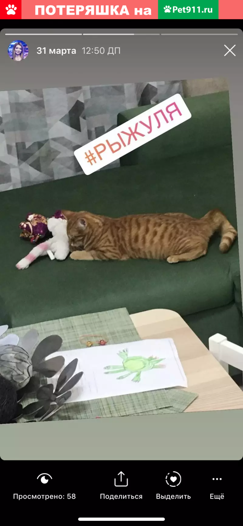 Потерялся рыжий кот на дачах около посёлка Горный, село Калаганова, рядом станция Изынский, кастрированный, беспородный, красивый с коричневыми полосками, глаза желто-коричневые. 10 мес. Крупный. Откликается на кличку Рыжик, Рыжуля. Ушёл 03/08/19. Если кто-то приютил котика, очень просим его вернуть. К нему сильно привязан ребёнок, вторая кошка и вся наша семья. Фото одно старое, он тогда был меньше. Нашедшему ВОЗНАГРАЖДЕНИЕ 1️⃣0️⃣0️⃣0️⃣0️⃣₽.