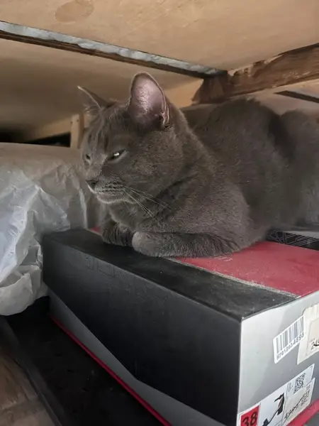 Серый гладкошерстный кот Стёпа.