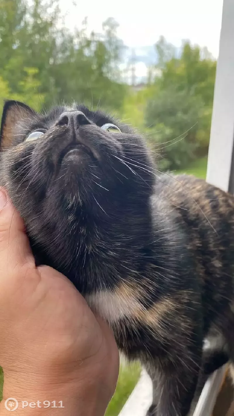 Кошка, особая примета задняя лапа рыжая сама трехветная (больше тёмного). Дома ласковая, но как поведёт себя в другой среде не знаю. На улице не бывала, наблюдала в окно. Выпрыгнула