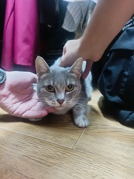Окрас серый, белая грудка и лапки. Кот кастрированый, в ухе есть нечитаемое клеймо из ПЛС. Зовут Марс. Обращаться по номеру +7 913 398 43 98