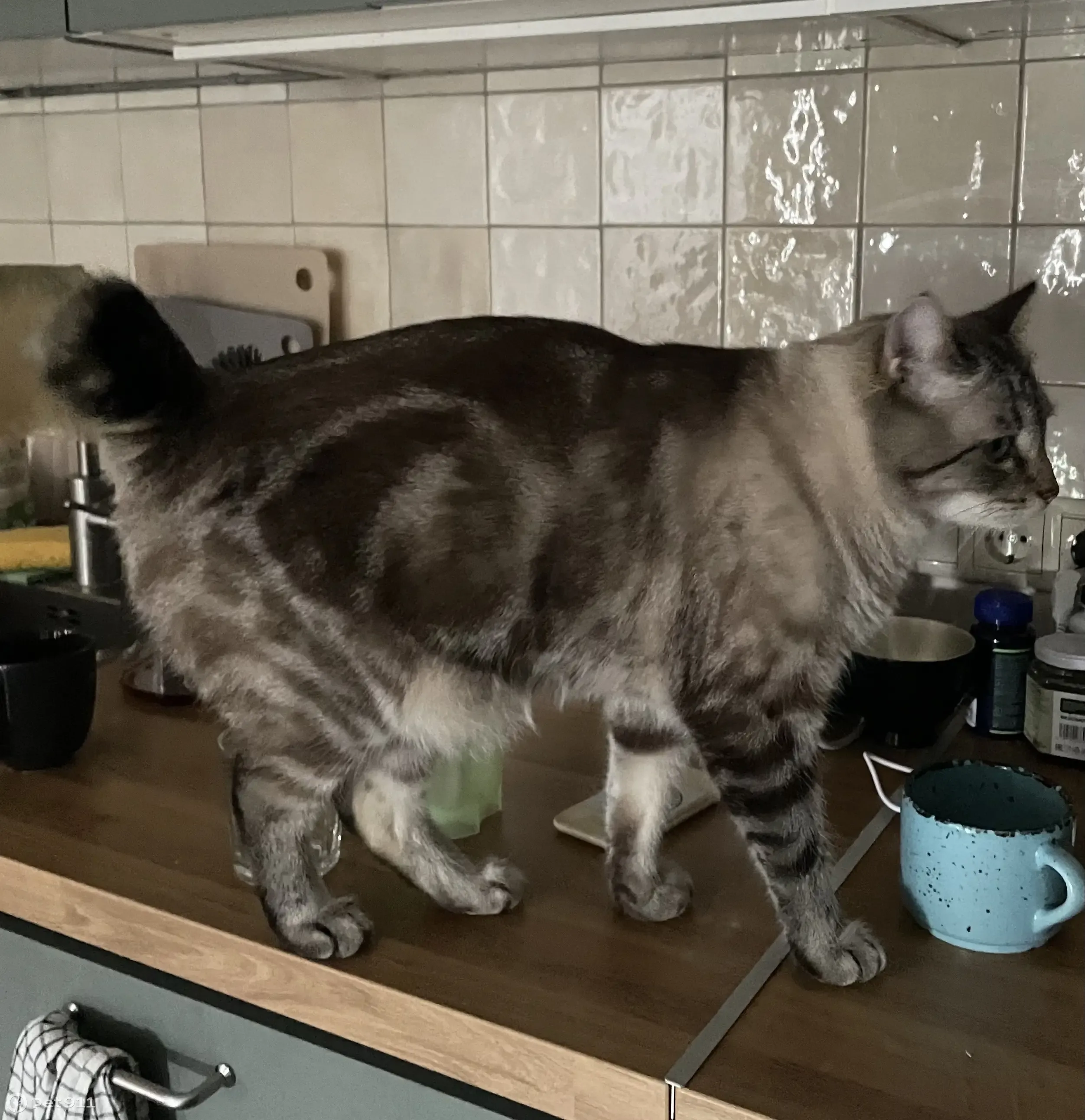 В частном секторе заельцовского района, в районе улицы Бестужева, потерялся кот серебристо серого цвета. Хвост культяпка, коротенький. На него одет ошейник с номером телефона.