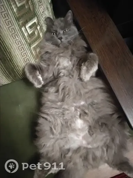 Коту примерно 6 лет, дымчатый окрас, пушистый на одном ухе снаружи бородавка. Кончик хвоста, как буд-то сломан. Кличка Дантес.