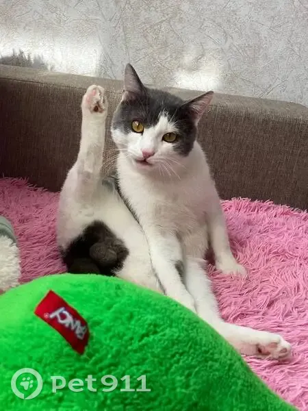 Кот Орео, возраст - 1 год, желтые глаза, бело-серый окрас