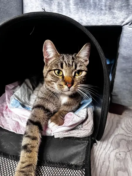 Полосатый кот, гладкошерстный. Белая грудка и лапки, желтые глаза. Мальчик, кличка "Лекс". Коричневая каемка на носике, без ошейника. Просто убежал и не вернулся. Помогите найти, за вознаграждение. Потерялся в районе Октябрьского района, ул. 2-Воинская, Автогенная.