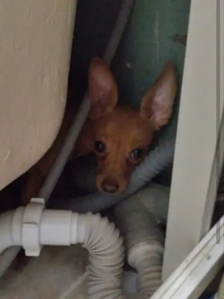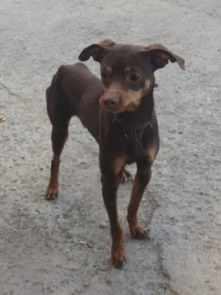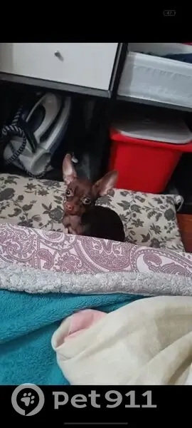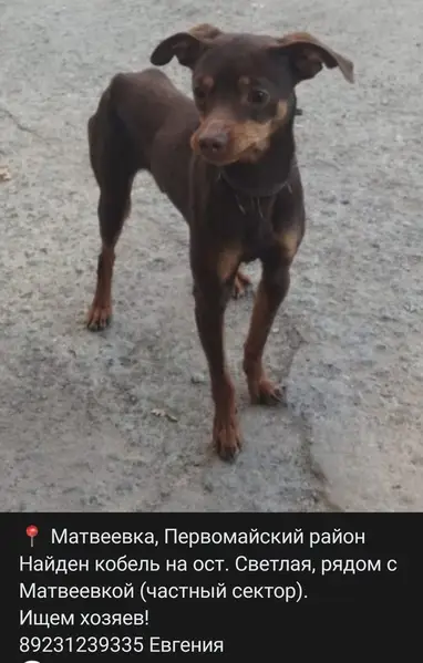 Опалый коричневый цвет, на ошейники есть номер куда звонить по пропаже, есть клеймо, возраст 1.5 года на вид маленькая порода той терьер откликается на Тая, Тайка