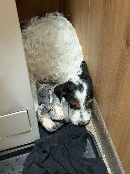 Пропала собака на Одоевского: бело-черная дворняжка, 5 мес. Сообщите по тел.
