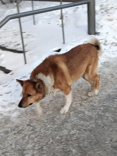 Рыжего окраса с белыми лапками и кончиком хвоста.