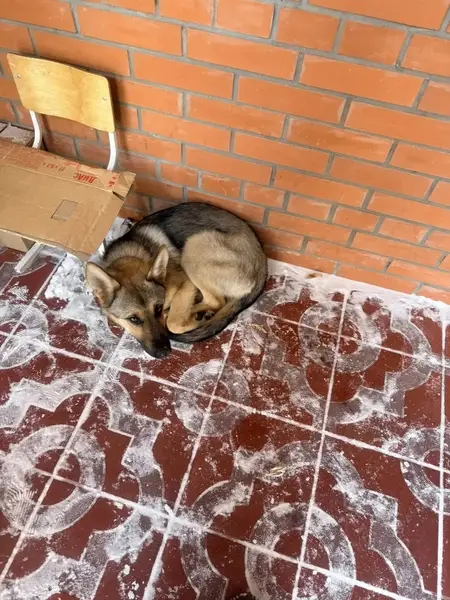 Немецкая овчарка, возраст 9 месяцев (выглядит постарше) достаточно игривый, не агрессивный, пропал в бедно-зелёном ошейнике, вышел со двора по сугробу.
