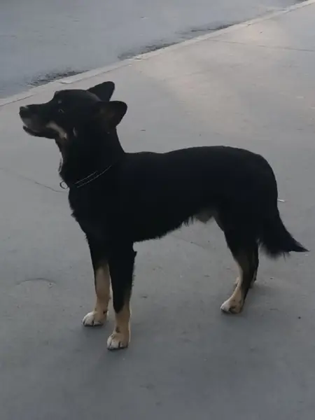 Кобель, окрас чёрный, помесь корги с кем то, одно ухо стоит, другое висит, с ошейником, не агресивный, ласковый. Пропал между ост. Сады любитель и Учитель