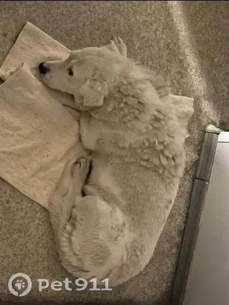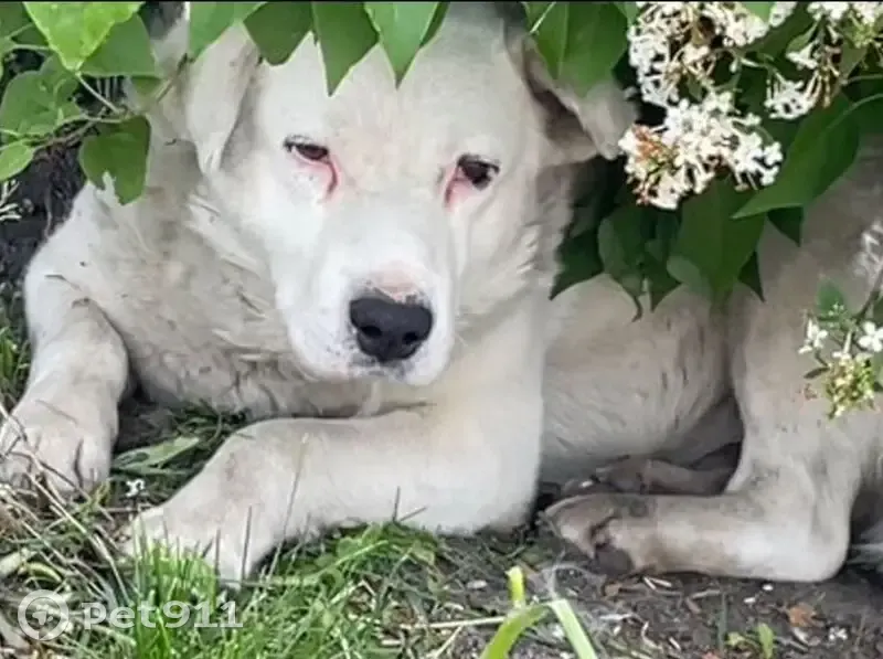 Белый пес, 8 лет, не кастрирован, без ошейника, упитанный (не худой, крепыш) Отличительная особенность: отсутствует кончик левого уха. Людей не боится, доверчивый, не злобный (не агрессивный), устойчивая психика. Может отозваться на кличку Чим. Предположительно прибился к стае бездомышей, либо попал в место откуда не может найти путь домой.