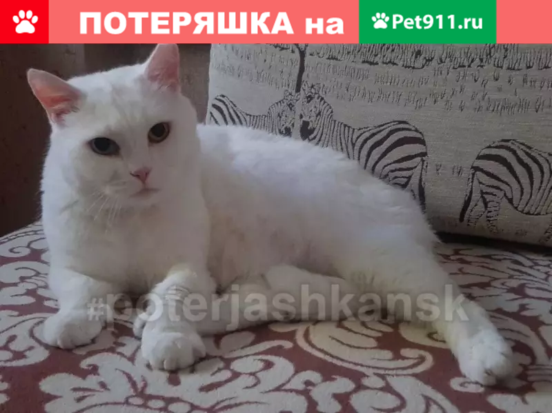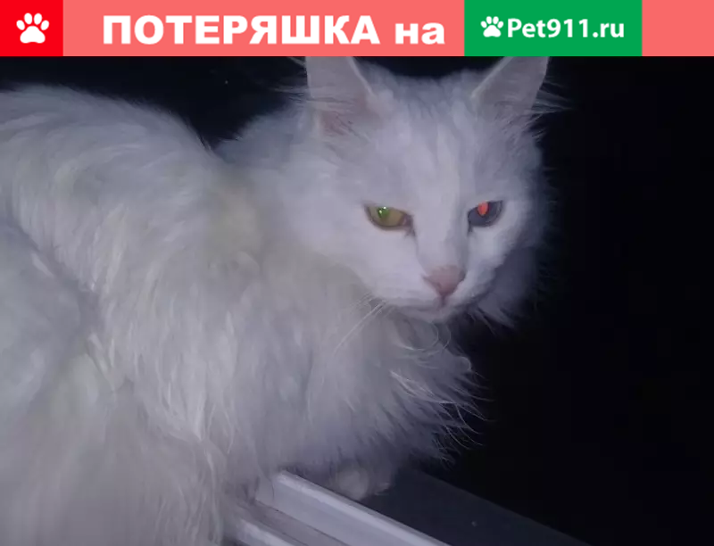Потерянные животные Новосибирск, фото: Пропала кошка в Новосибирске: белый кот с глазами разного цвета.