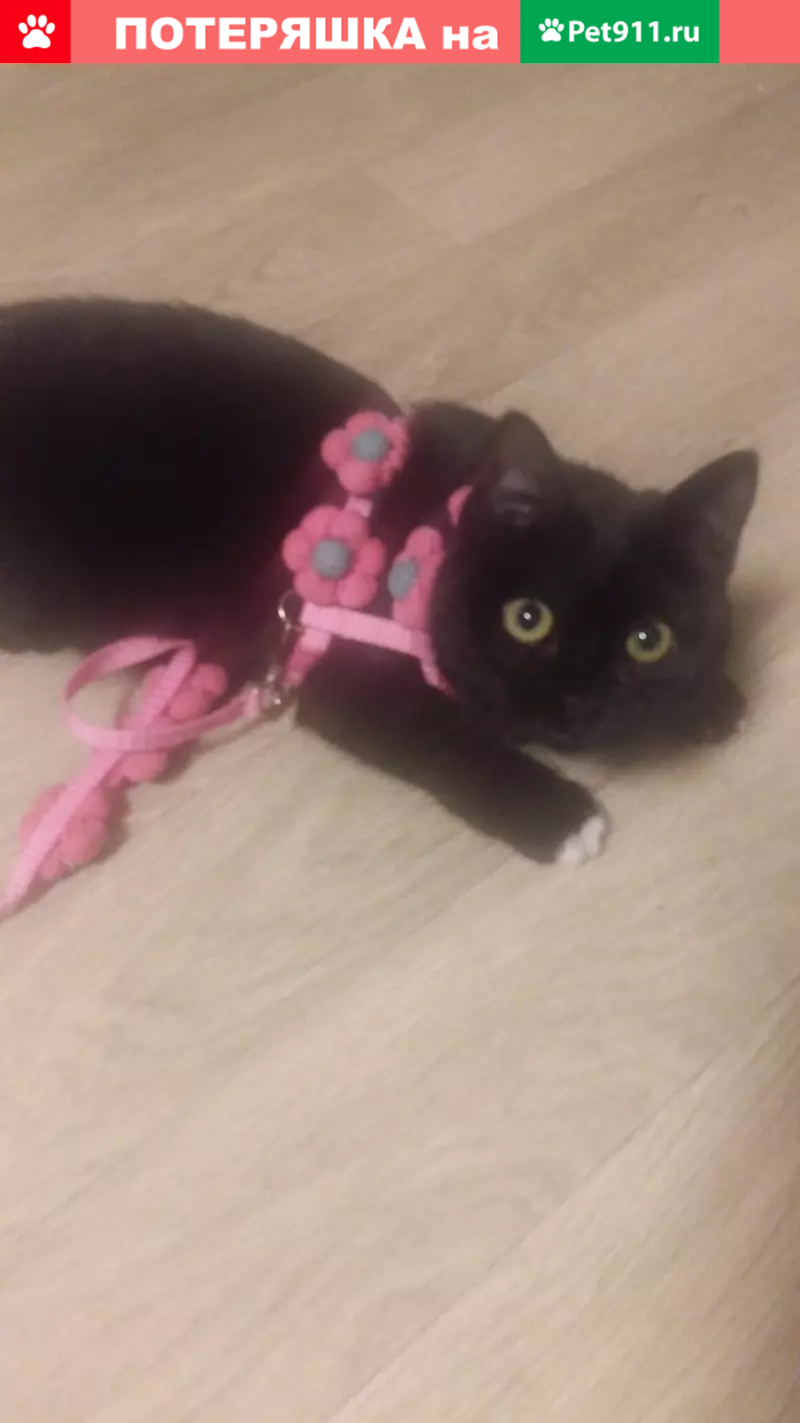 19 мая потерялась кошка, окрас чёрный, на гру...