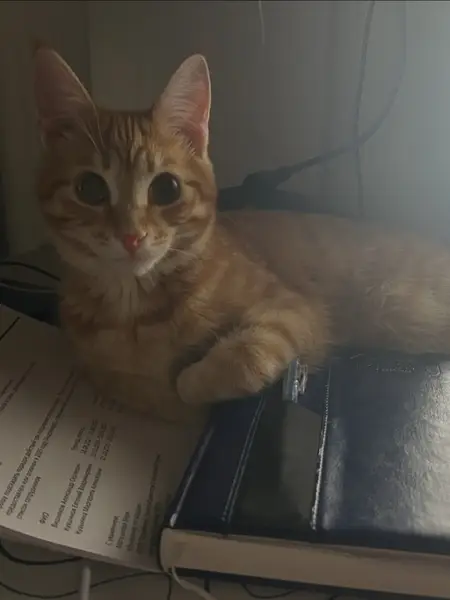 Рыженькая, кончик хвоста загнут. Глаза зеленые. На шее красный ошейник от блох и клещей. Сначала бегала мимо нашего дачного дома, потом пришла просить помощи - на теле была ранка. Постоянно голодная, днем ее кормим.