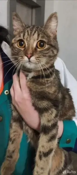 Ранен собака, насколько сильно не знаем. Окрас интересный, симметричный рисунок на боках