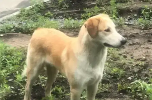 Собака среднего размера, девочка, 14 лет, рыжая, порода дворняга, коричневые глаза, пушистый хвост с белым на конце, коричневый ошейник с белыми цветами