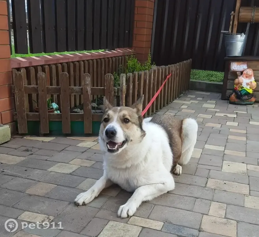 В конце февраля этого года была найдена молодая, активная собака, метис лайки (сука)белая, с рыжими пятнами, ушки острые стоячие, хвостик закруглён. Бегала по трассе, либо была завезена, либо потерялась.