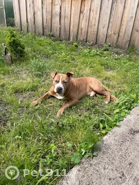 Пропал амстафф на прогулке,имеется зооагрессия к крупным кобелям,к людям абсолютно доброжелателен,мог даже к любому человеку сесть в машину на дороге…,на крупе с лева иметься родинка в виде папиломы,это не клещ,его очень ждут дома.