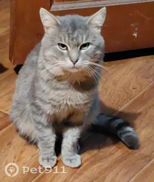 Серый полосатый, откликается на кличку скотч, но больше на знакомый голос. Вышел в пятницу в 6 утра из дома в туалет и не вернулся. Диковат к незнакомым людям, боится и убегает.