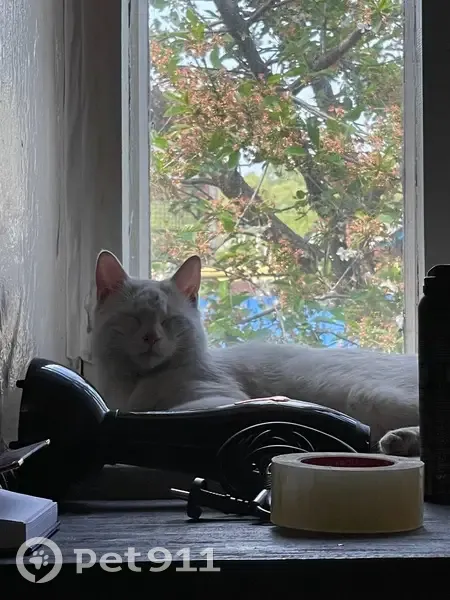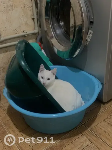 Он вышел гулять и не вернулся , у него черное пятнышко на хвосте от краски , и родинка на носике . Ещё на мордочке шрам есть после драки , а так он весь белый .