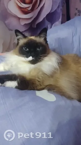 Очень привередливая кошка, нуждается в правильном уходе Порода Бирма, возраст 12 лет, особые приметы: на мордочке белое пятнышко 10 мая выбежала из квартиры и по сей день не вернулась обратно Мы надеемся и и верим, что найдем своего любимого питомца Если вы видели или обладаете информацией о нахождении кошки, сообщите по номеру телефона +79103305137( Полина)