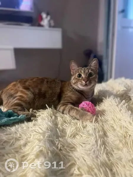 17 августа вечером с балкона выпрыгнула кошечка, видели той же ночью, но не успели поймать, убежала и спряталась. Порода смесь бенгальской, Окрас "черепаховый", глаза светло-зеленые. Вне дома, на улице очень пугливая. Практически не мяукает, откликает только на кличку Сима (Симона)