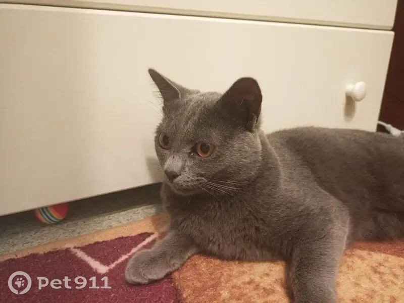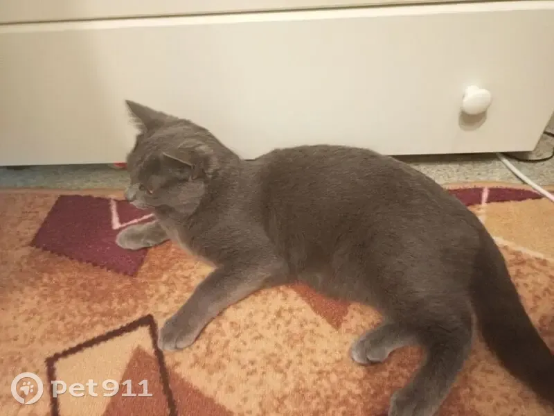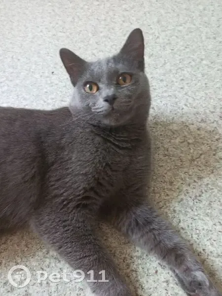 Серодымчатый кот, жёлтые глаза, когти постриженные, на вид спокойный контактируемый, на вид ему где то 1-2 лет, сидел на улице возле вода всю ночь никто за ним не вышел