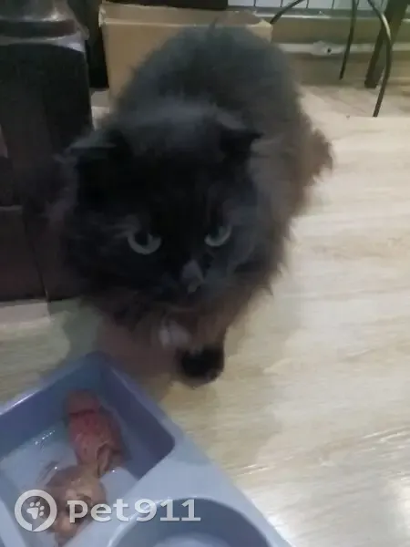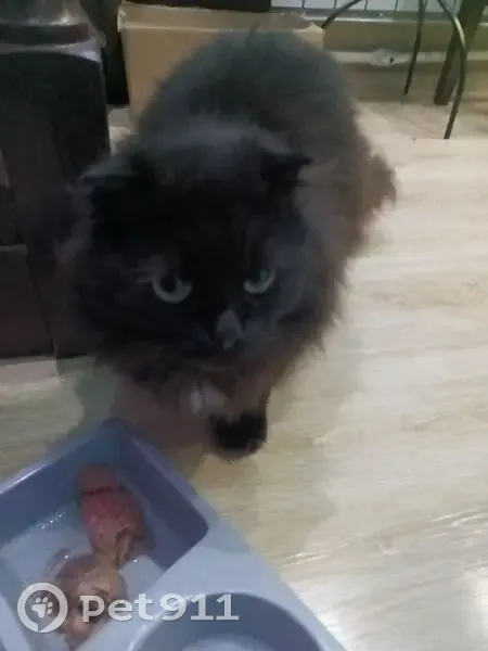 черный ,захотела есть и мяукала ,ласкается говорят что кот длиношерстный британец ,глаза желтые возможно в ветеринарке сказали кот возраст +-3 года кастрирован ,на груди белое пятнышко хозяева отзовитесь