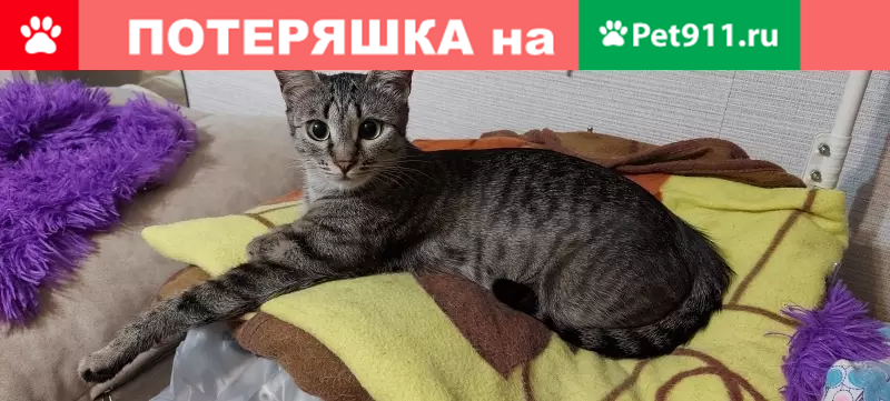 Потерянные животные Новосибирск, фото: Пропал котенок Полосатик около дома на Адриена Лежена 8/1, Новосибирск