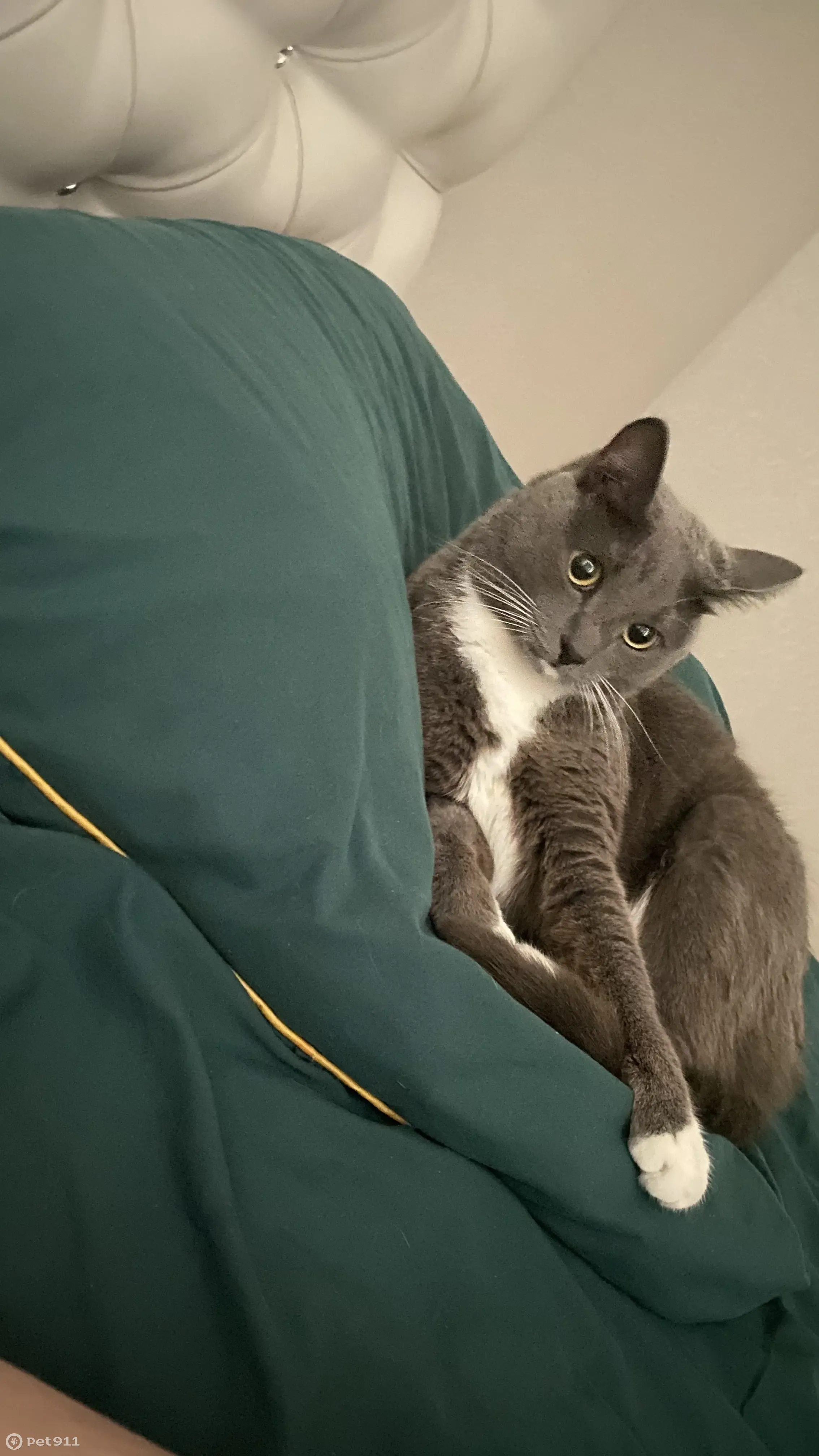 Потерялся кот. Серый окрас, белые лапки и жив...