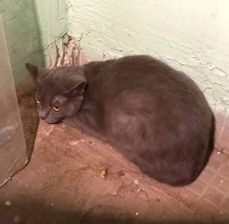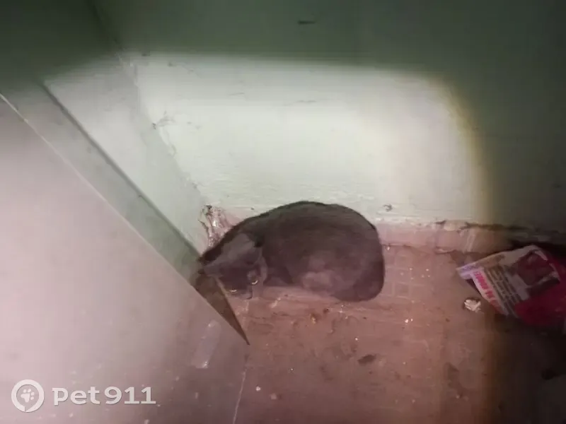В подъезде дома, 24 февраля прибился котик. Окрас дымчатый. Тихий, спокойный, в руки не даётся. Судя по всему случайно убежал из дома, т. К. Попал в совершенно незнакомую обстановку и пытается спрятаться. Пока сидит у нас в подъезде и неравнодушные люди его подкармливают.