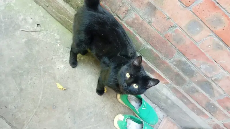 Черная кошка с белым треугольником на грудке и белым пятном на животе. Очень ласковая и игривая. Ловит мышей, кушает все. Мы ее обработали и стерилизовали. Так как местные коты ходили стаями весной. Может кто то ищет или хочет взять себе кошечку.