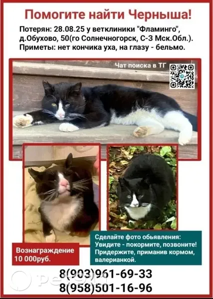 Солнечногорск, могу пойти в любой район уже Солн. Не теряю надежды! Ищу! Приметы-бельмо на глазу, нелюдимый, опасливый, придержать едой, валерьянкой. Если он - достойное вознаграждение.