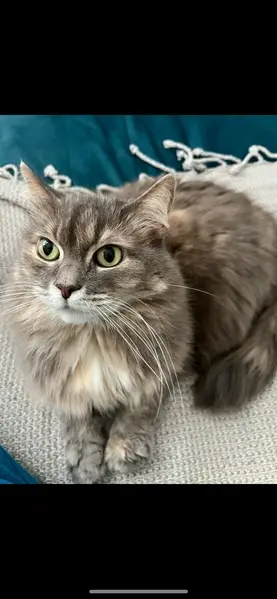 05.05.18 нашла домашнюю кошку на перекрёстке Любы Новосёловой и Маршала Жукова. На вид около года, очень ласковая, приученная к лотку.