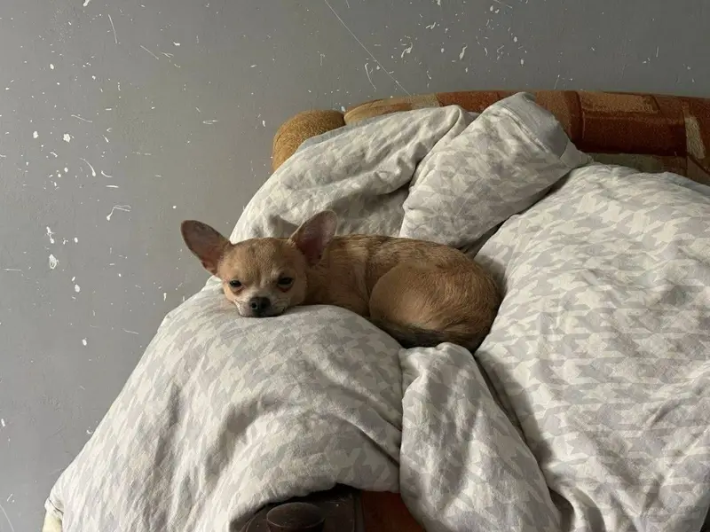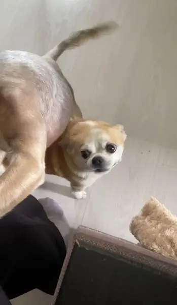 Светлая шерсть, высунутый язык, неухоженные ногти. Нашлась в подъезде дома. Ведёт себя нервно, но неагрессивно.