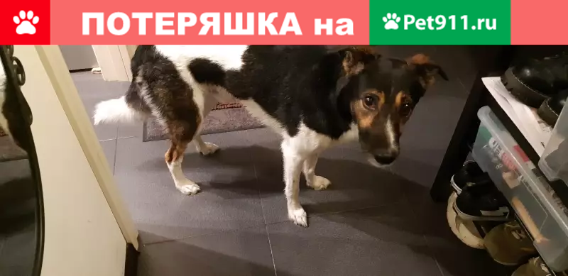 Найденные животные Москва, фото: Найдена белая с коричневыми ушами сука-терьер в Московском ТЦ