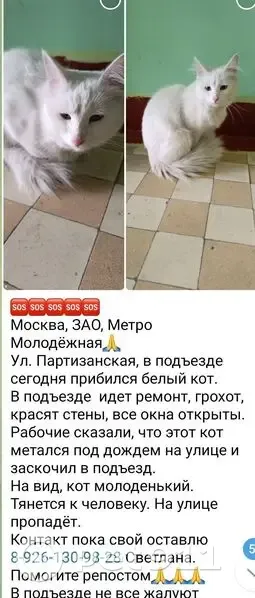 Найденные животные Москва, фото: Кошка найдена: Кастанаевская ул., 7, Москва