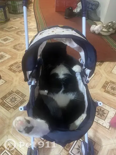 Черный окрас, белые лапки , белая грудка , белое пятнышко под носом , ошейник полосатый . Случайно выскочил в подъезд никто не заметил . Очень ласковый и контактный