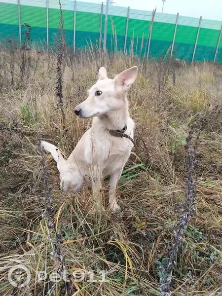 Светло бежевый окрас. На животе шрам после операции, была в зелёном ошейнике . Вечером на прогулке испугалась взрыва питард и убежала в неизвестном направлении.