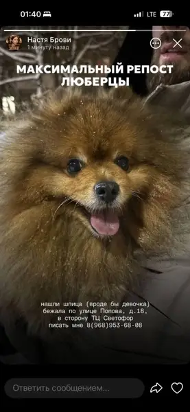 Помогите пожалуйста найти любимицу 16 июля в деревне Подушкино пропала собака девочка шпиц 5 лет коротко стриженная окрас палевый-рыжий откликается на кличку Фанта нашедшему горантируем вознагрождение.