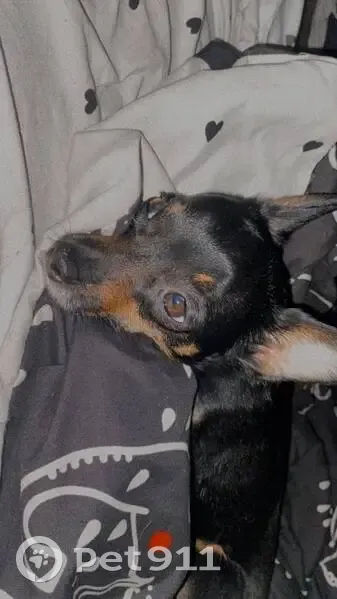 Темно Рыжий окрас Купированный хвост Не стриженные очень длинные когти Был без ошейника.
