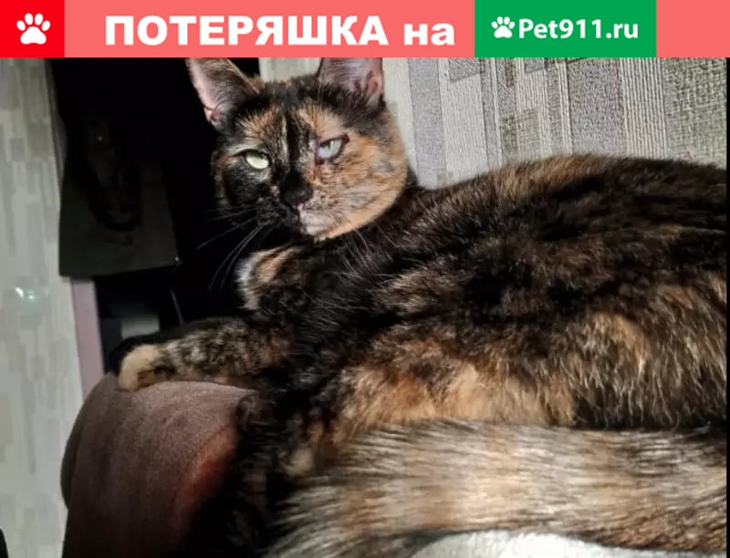 Потерялась кошка! Г. Королев по улице Октябрьская, 17 Левый глаз больной (подтекает); Нос чёрный с розовым пятнышком на перегородке; Нижняя часть мордочки (под носом) как бы поделка на тёмную и светлую; Левая лапа светлая. Кошка ухоженная, средних размеров, пугливая.