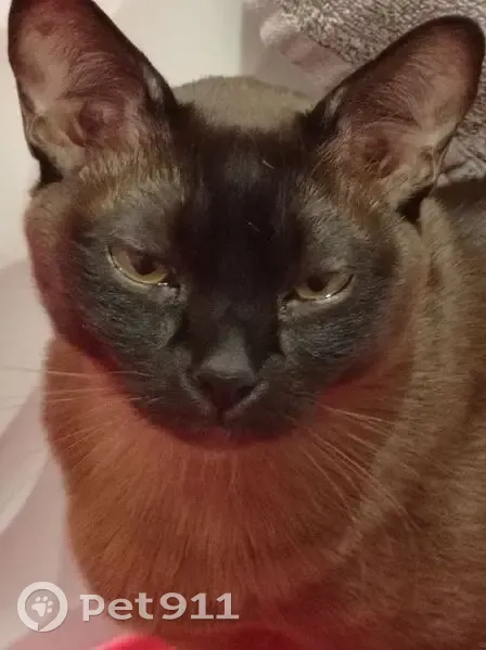 Темно-коричневого цвета, короткошёрстный. Порода: бурма. Любопытный, умный кот. Отзывается только на своё имя. Ушёл днём погулять, спустя сутки так и не вернулся. Обычно возвращался ближе к вечеру.