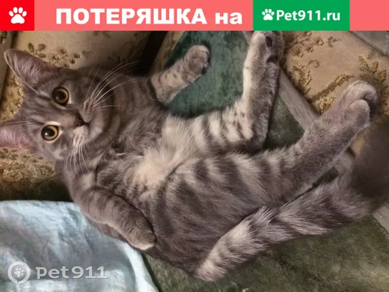 Кличка Фара. Кошка серая с пятнистым и полосатым окрасом, короткошерстая, глаза янтарные. Подобрана с улицы в 3/4 месяца. Возраст около года. 13.04.20 была вывезена на дачу впервые. Боюсь, не успев сориентироваться, может не найти дачный дом.