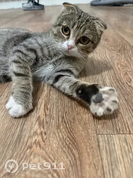 Шотландская вислоухая кошечка найдена на Московке в середине октября. Воспитанная, общительная, на груди белое пятно в форме сердца. Бегала возле дома за людьми, замерзшая и голодная забежала в подъезд