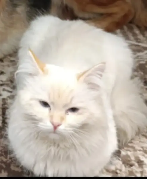 02.09.2023 около 12 часов дня в квартиру зашёл со мною кот (или кошка). Про не знаю. Комок шерсти. Длинношерстная порода с приплюснутым носом, глазки желтые. Видимо, породистый, не разбираюсь. Светлого окраса. Грязный, в колючках, листочках, палочках, голодный, покушал, уснул. Ласковый, не боится меня. Был в подъезде, думаю подбросили. Утром выходила, его не было. Спокойно пошел за мною, зашёл в квартиру, как к себе домой. Приютила, жалко котейку. Пожалуйста, хозяева, отзовитесь Скорее всего был на улице какое-то время, весь в листьях, грязный, шерсть очень длинная, пушистый, нос приплюснутый, на фото почему-то этого не видно. Спит, похрапывает. что-то снится ему начинает резко мурлыкать, просыпается. Очень тревожный сон у него. Боюсь его тревожить, чтоб не напугать.намучился видимо. Скушал магазинный пакетик жидкого корма. Но от домашней котлеты тоже не отказался. Сухой корм тоже кушает. Не понимаю чем его кормить, он все кушает. Кушает с жадностью, вылизывает полностью тарелочку. Очень голодный. Водичку не пьет почему-то. Кефир и сметану с удовольствием. Поилка включена, стоит в доступном месте, но не пьет. К лотку приучен, сам все нашел. Знает звук холодильника, сразу бежит. Очень хочется вернуть его хозяевам. Но пропал явно не сегодня и не вчера. Очень грязный, есть несколько колтунов на ножках. Глазки надо лечить. Хорошо ориентируется в квартире. Знает подоконник, кресло, диван. По объявлениям в группах потерявшихся питомцев Омска не могу найти этого котика, чтоб его, кто искал.