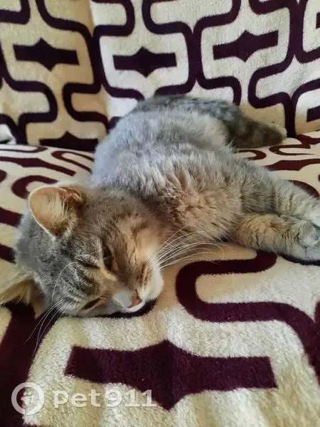 Нашла вчера (11.03.2025) котика в 19:00, очень добрый и ласковый, в районе "Институт ветеринарной медицины и биотехнологии" примерно в 400 м от от остановки Рабиновича, сидел у главного входа на ступеньках, как минимум за 2 часа прибывания там его никто не нашёл. Взяла на передержку. Средний кот, предположительно, домашний, т. К. Проблем с бытом не возникло, сразу понял, что делать с лотком, а также не боится рук, в машине ехал спокойно словно для него это обычное дело. Из примет с правой сторны у него почему-то выстрежена шерсть (на фото видно), но повреждений в этой области не обнаружено. Парода: не известно Окрас: Серо-коричневый полосами на хвосте тёмного цвета Пол: мужской